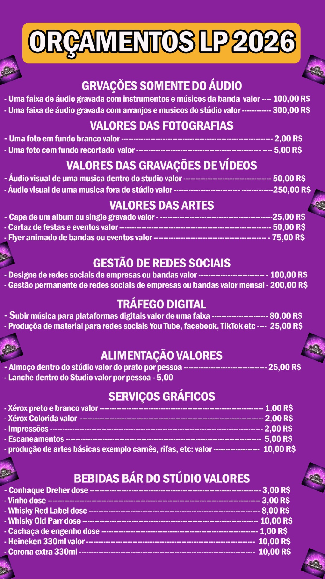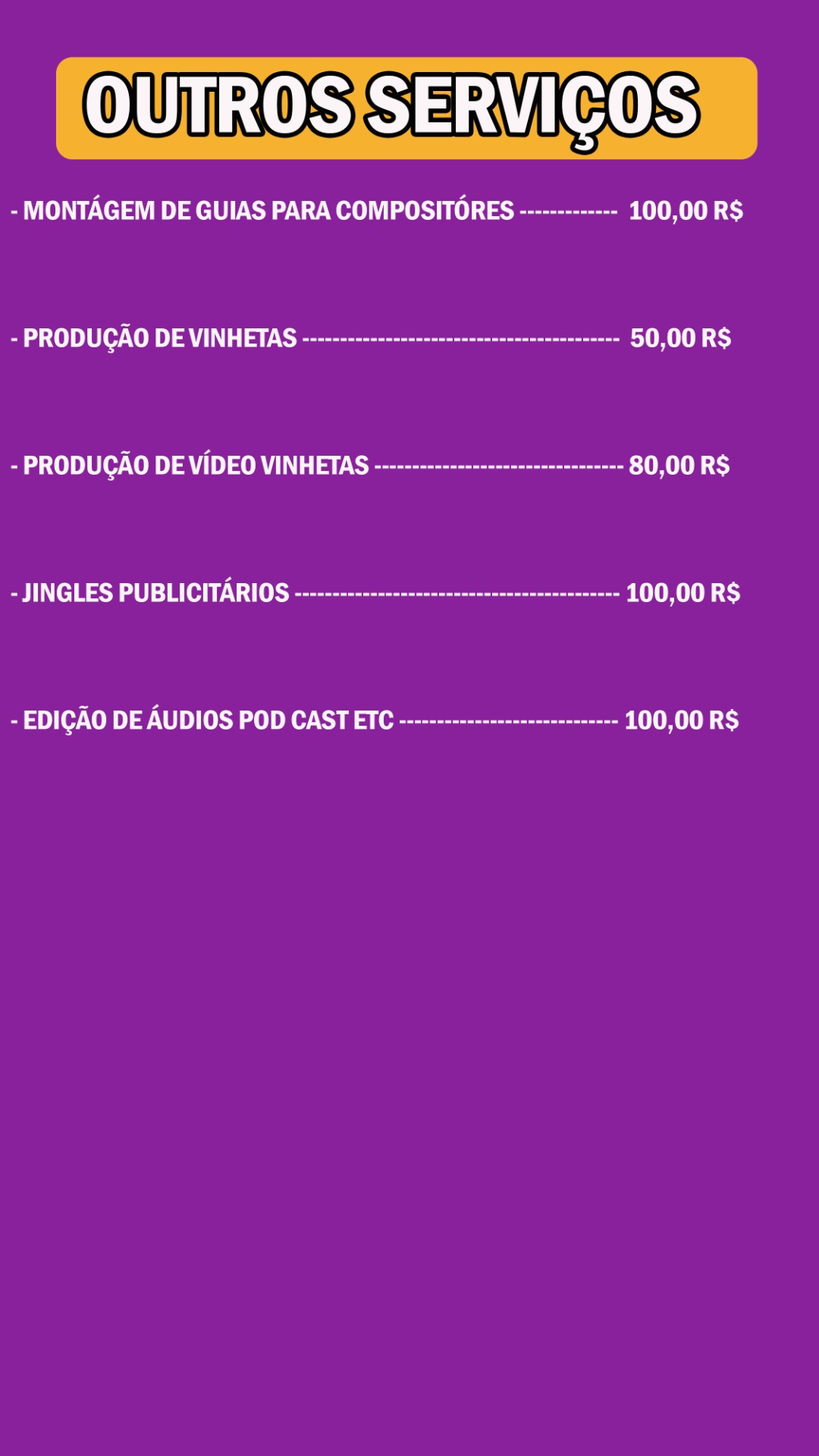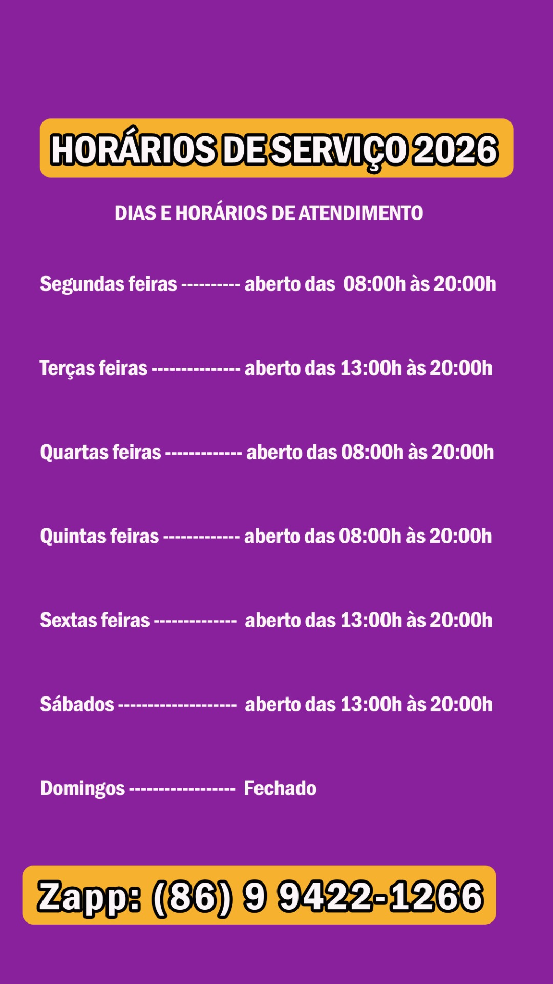 Estes são os nossos contatos e valores para agendamentos de serviços